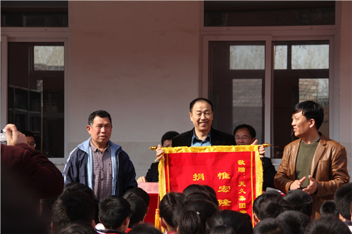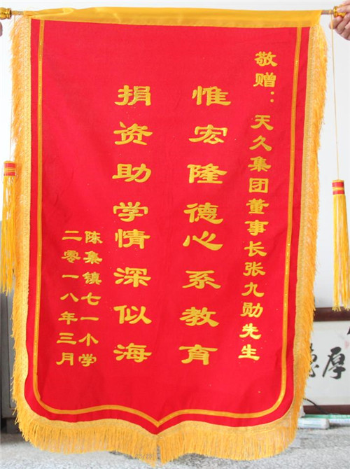 七一小學(xué)為張九勛董事長(zhǎng)頒發(fā)錦旗
